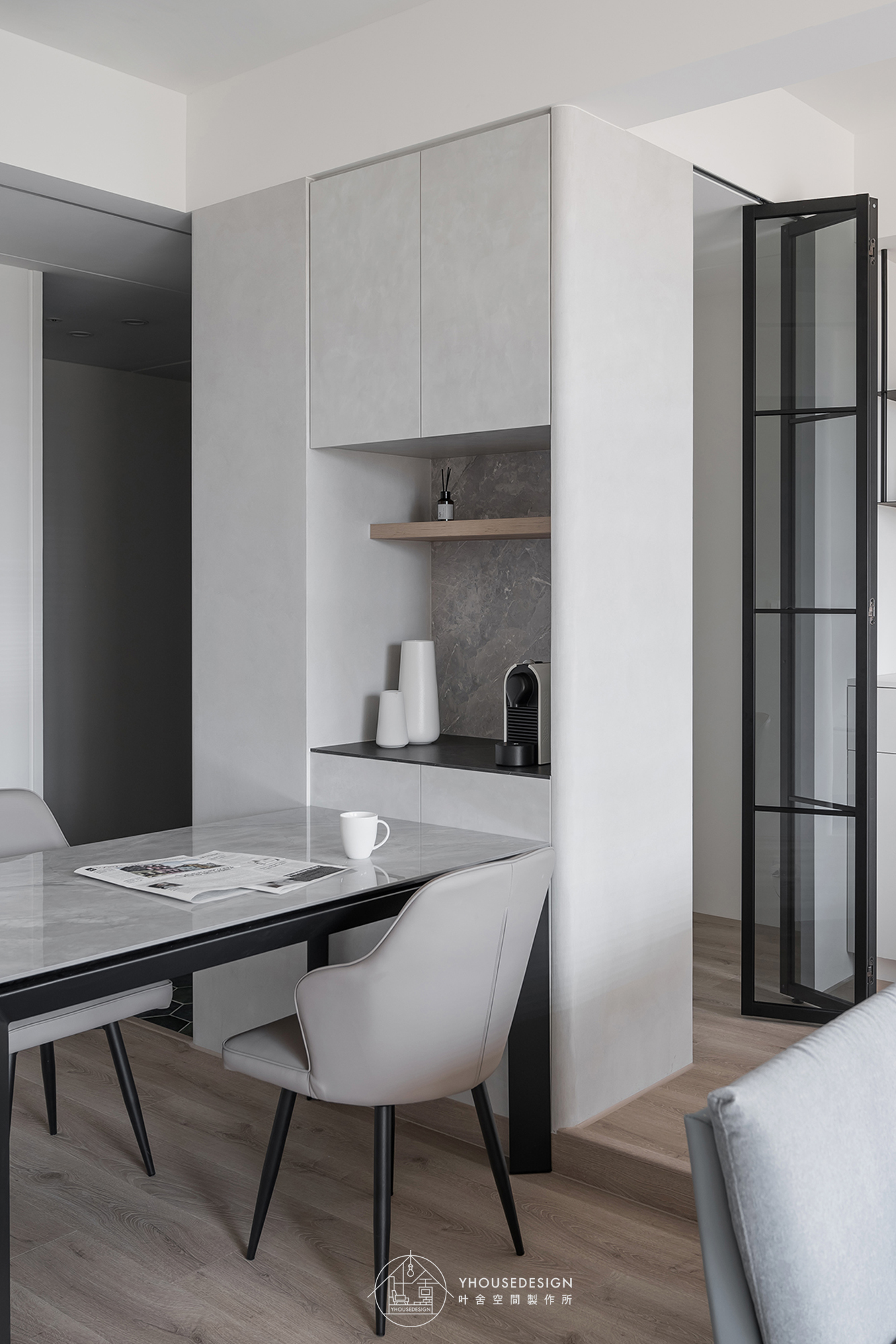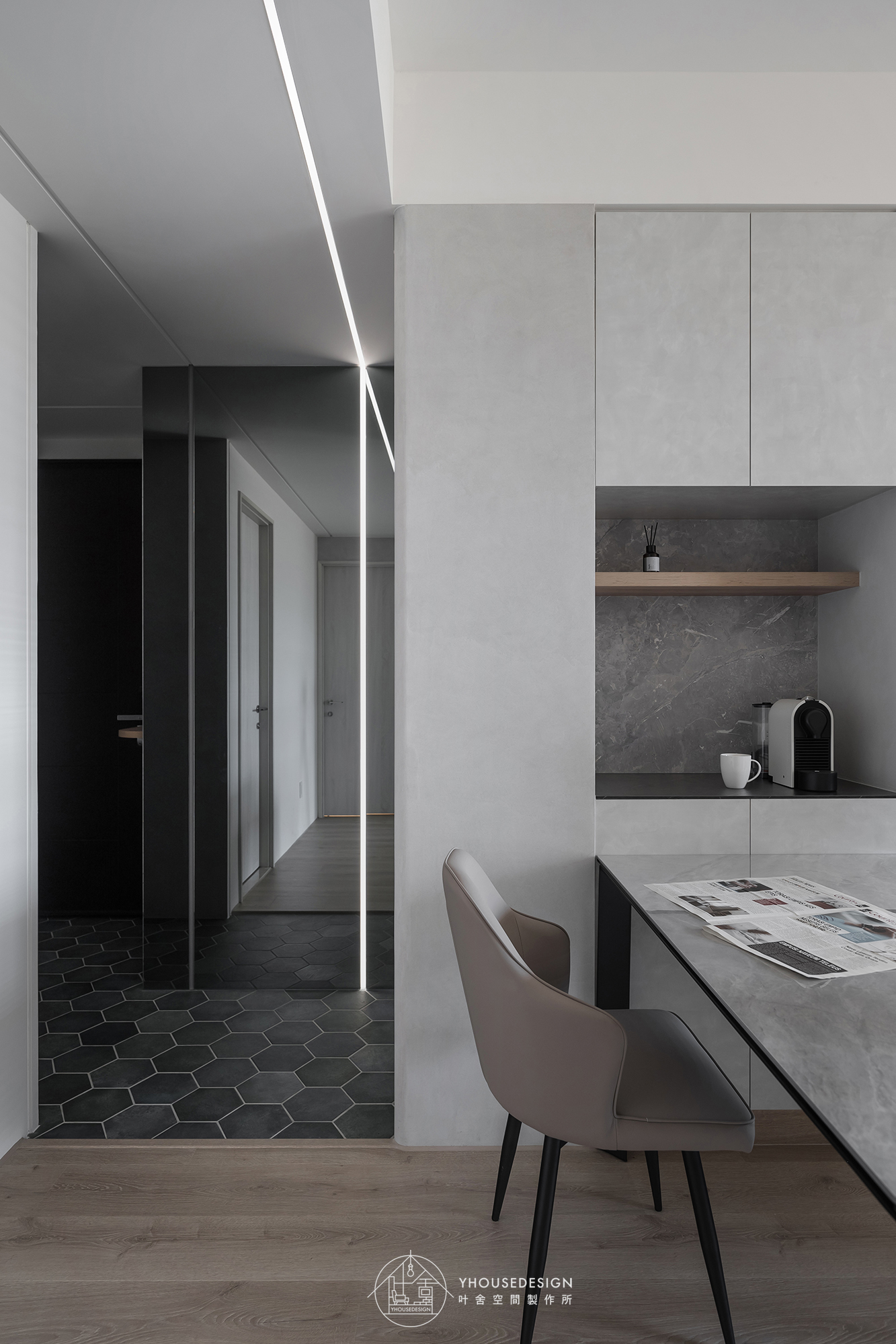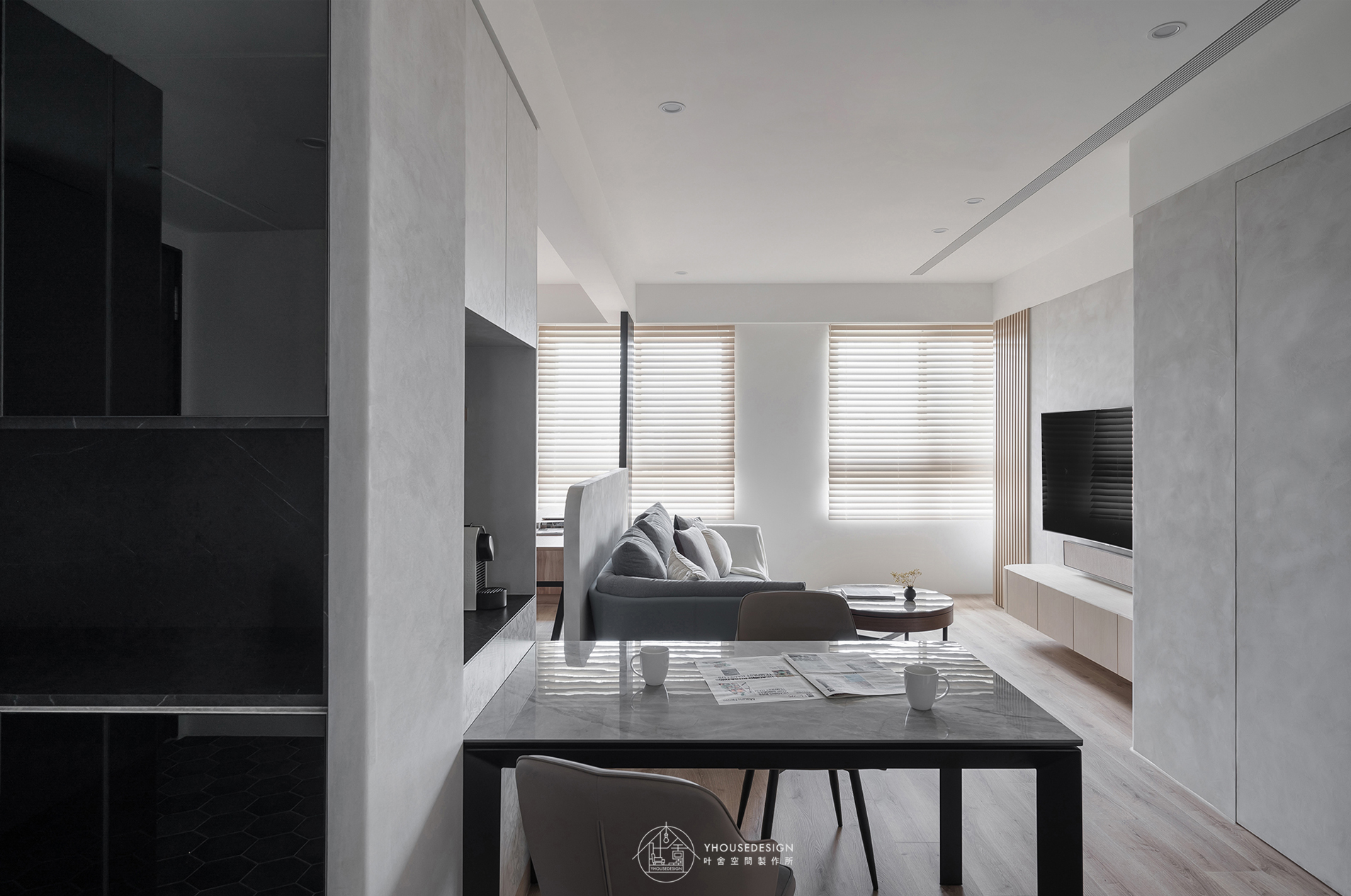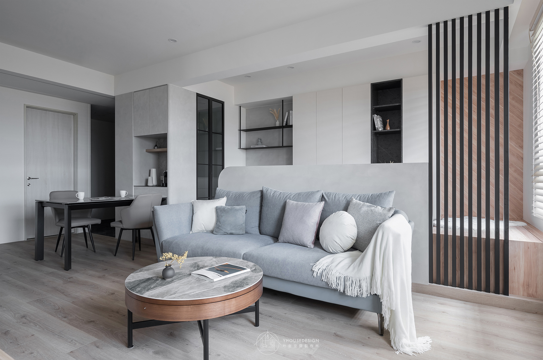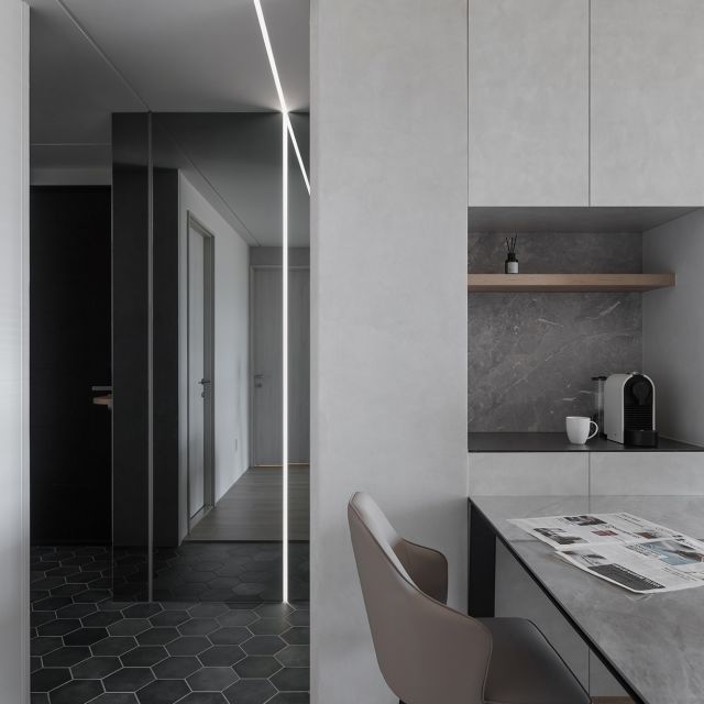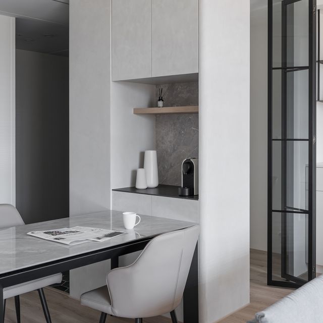 白、灰、黑色系, 隨著陽光照射角度的變化,呈現不同層次之美。