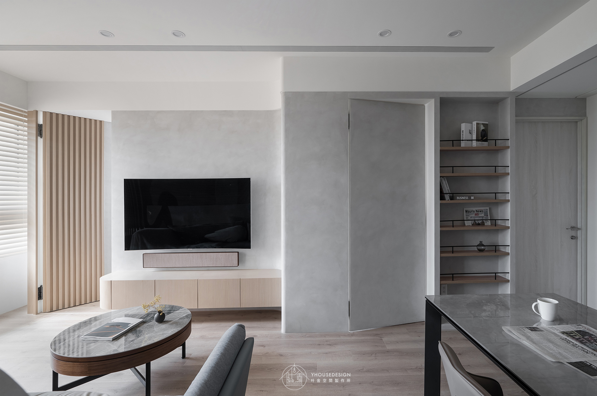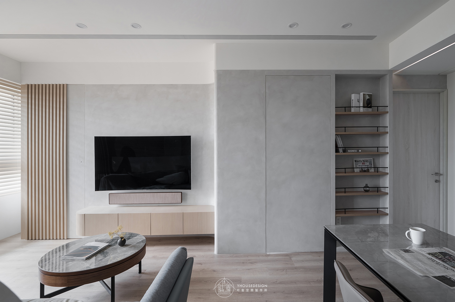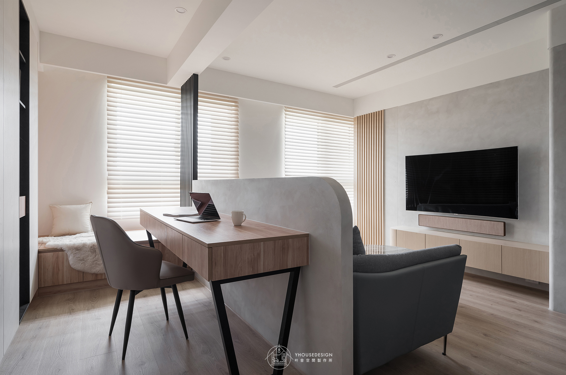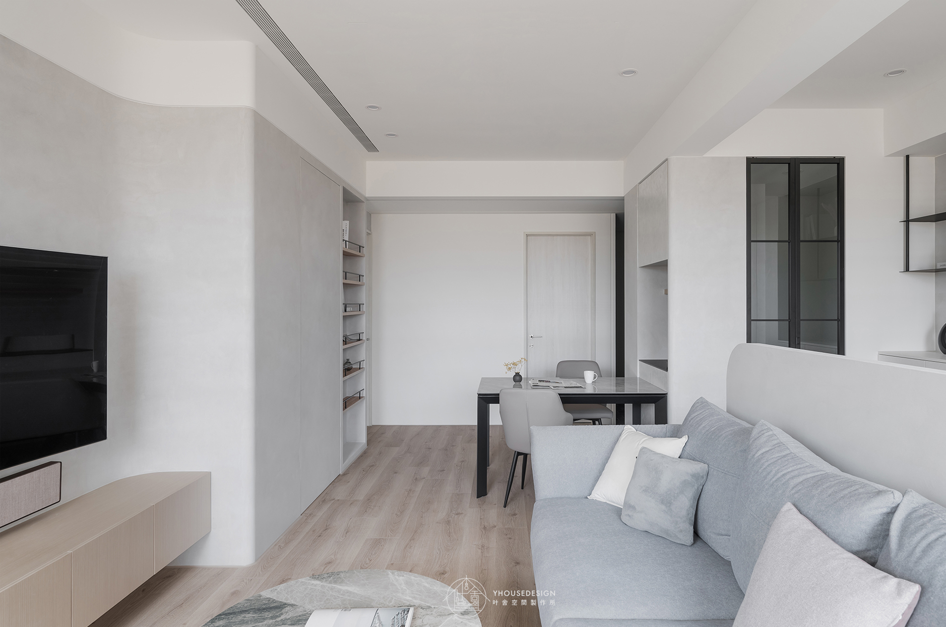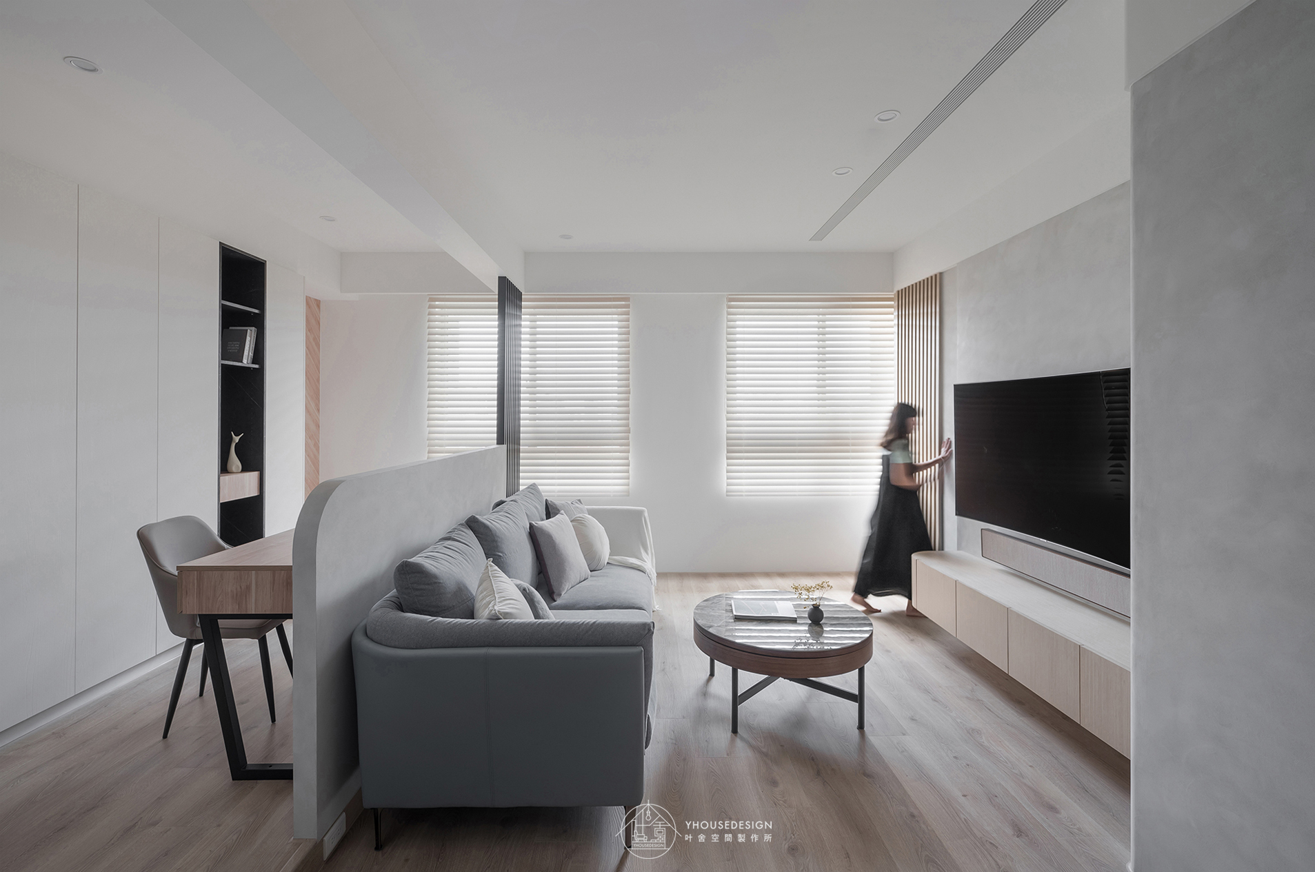 白、灰、黑色系, 隨著陽光照射角度的變化,呈現不同層次之美。